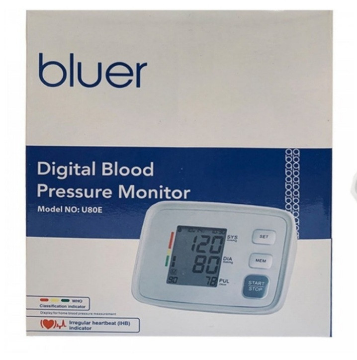 فشارسنج U80E دارای 180 جایگاه ذخیره حافظه برای 2 کاربر بوده که میتوان به صورت مجزا اطلاعات فشارخون را در پروفایل هر شخص ذخیره نمود. از دیگر مزایای این فشارسنج میتوان به وجود کابل شارژ یو اس بی و باتری، سیستم تشخیص آریتمی قلب، خاموش شدن خودکار دستگاه، تنظیم ساعت، تاریخ جهت اطلاع دقیق از زمان سنجش فشار خون، کاف مناسب 22 تا 32 سانتی متر و سیستم سه بار اندازه گیری اشاره کرد. کار با دستگاه فشارسنج دیجیتالی بلوئر بسیار راحت بوده و کافی است شیلنگ کاف را به دستگاه متصل نمایید، کاف را به دور بازوی خود ببندید و دکمه Start دستگاه را فشار دهید. دستگاه کاف را از هوا پر کرده و بعد از گذشت مدت زمانی کوتاه کاف از هوا خالی میشود. مقدار فشارخون به همراه مقدار ضربان قلب بر روی صفحه نمایشگر دستگاه نمایان میشود که با استفاده از دکمه Mem میتوانید نتیجه را ذخیره نمایید. این محصول قابل استفاده برای تمامی سنین بوده و برای افرادی که دارای مشکل فشارخون میباشند محصولی ایده آل به حساب میآید.