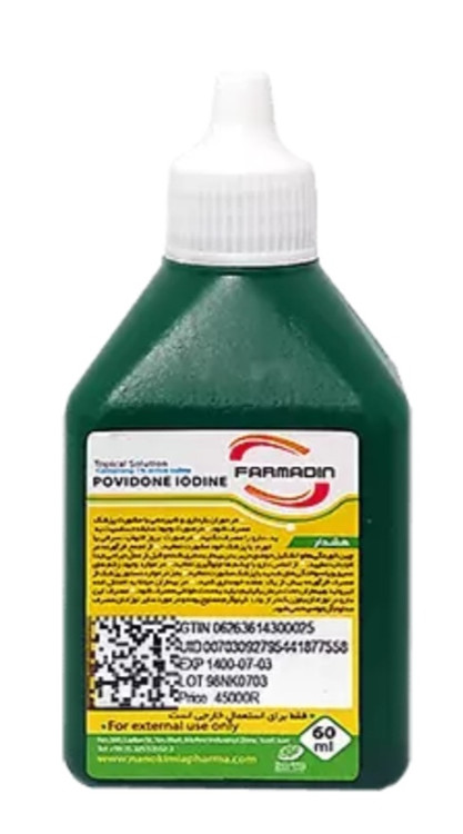 این محلول که در قدیم به آن دوا گلی نیز میگفتند محلولی موضعی است که کاربرد گستردهای درمصارف پزشکی دارد، به همراه 10 درصد ید فعال تشکیل شده است که برای ضد عفونی کننده و از بین برنده باکتری های گرم مثبت، قارچ ها ویروس ها بوده و مورد مصرف آن ها برای ضد عفونی کردن بریدگی زخم های سطحی، خراشیدگی، زخم های کوچک و همچنین در بیماریهای زنان و زایمان جهت شستشوی واژن و غیره استفاده میشود.